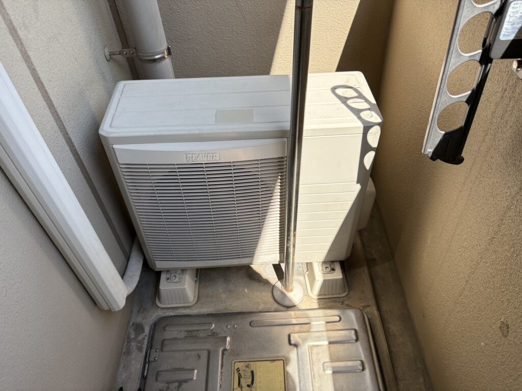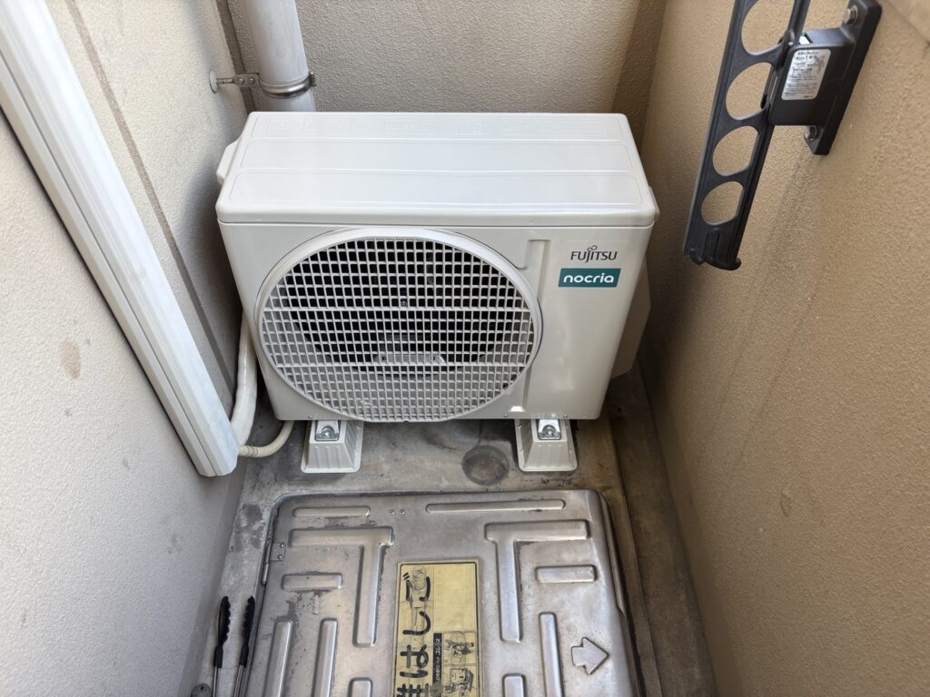 室外側も既存エアコンと同様、ベランダスペースにしっかり収まりました